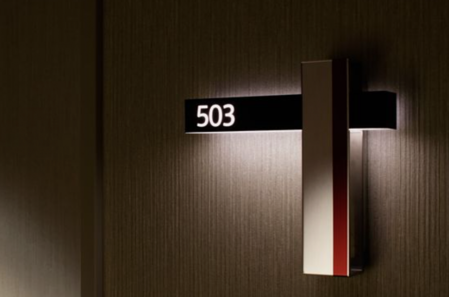 酒店門牌號標(biāo)識設(shè)計的創(chuàng)意,房號與門牌號的結(jié)合點(diǎn),這個是一個很貼切的設(shè)計手法,還可以把門禁系統(tǒng)結(jié)合到當(dāng)中去,這是我們最重要的一個環(huán)節(jié)。