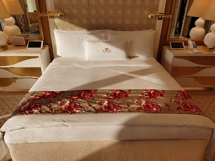 深圳客房枕頭上的標識設計與分享。精至的印刷品與絲印效果,體現高端大氣的品質。
