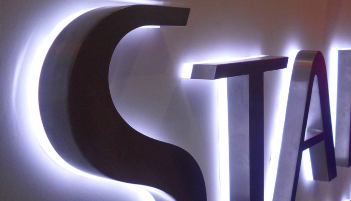 我們通常在做指引的時候,上面不是見到有一些發光字嗎?那些發光字就是用亞克力雕刻成一個立體的字,亞克力標識然后襯托在不銹鋼板上,在背后再定一個LeD的發光燈,這樣亞克力就能透光出來了。不過這個時候的亞克力需要處理一下,可以我們不要直接用白色的亞克力,我們可以在上面做一些磨砂的處理,這樣效果會看起來更高檔。或者我們采用一種叫做黑白版的亞克力材料,他在白天的時候是黑色在晚上的時候,它可以透光出來就變成白色了,這也是一種很好的材料選擇。